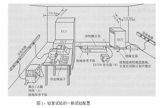 重复性快速瞬变试验是一种将由许多快速瞬变脉冲组成的脉冲群耦合到电气和电子设备的电源端口、信号和控制端口的试验。试验的要点是瞬变的短上升时间、重复率和低能量。其目的是评估受试设备对来自操作瞬态过程(如断开电感性负荷、继电器接点弹跳等)中所产生的瞬态脉冲群的抗扰度。